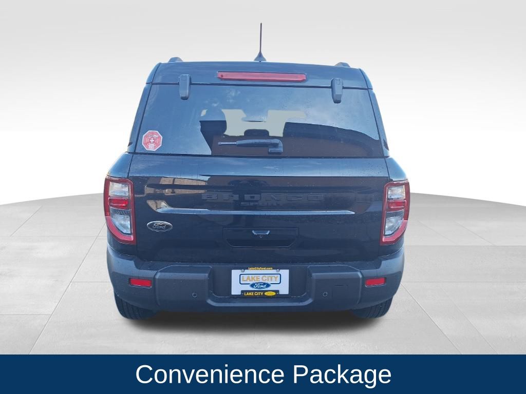 - Black Appearance Package: Textured matte black hood graphic, unique badges with black accents, painted Shadow Black roof, cargo mat, matte black-painted aluminum wheels, and black BRONCO SPORT lettering on the liftgate
