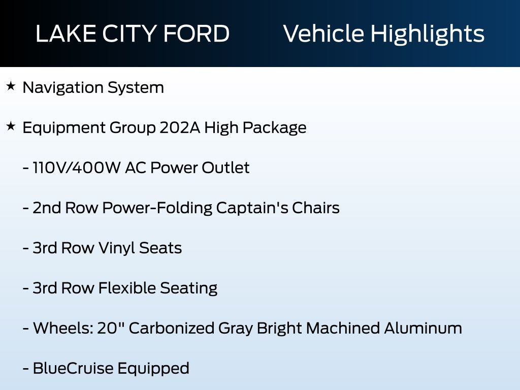 Stepping inside, you'll be greeted by a spacious and meticulously crafted interior that combines premium materials and cutting-edge technology. The power-folding 3rd-row seats and flexible seating configurations offer unparalleled versatility, allowing you to accommodate your passengers and cargo with ease. The Connectivity Package and SYNC 4 infotainment system keep you seamlessly connected, while the 360-Degree Zone Lighting and Wireless Charging Pad add convenience to your daily drives.