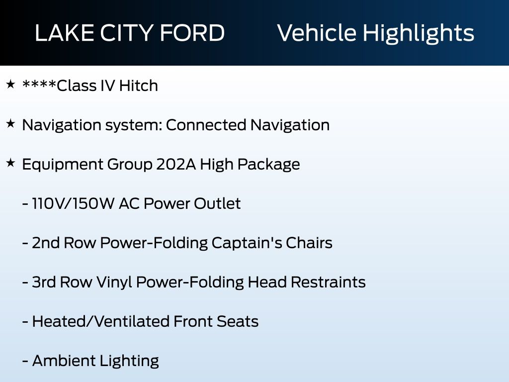 Safety is paramount in the Expedition Max XLT, with a suite of advanced features including the Emergency Communication System, Blind Spot Monitoring, and Rear Cross-Traffic Alert. Enjoy the convenience of the Rear View Camera, Auto High-Beam Headlights, and Intelligent Access with Push-Button Start.
